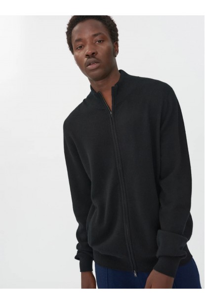 SİYAH DİK YAKA FERMUARLI KAŞMİR ERKEK HIRKA
