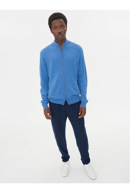 MAVİ DİK YAKA FERMUARLI KAŞMİR ERKEK HIRKA