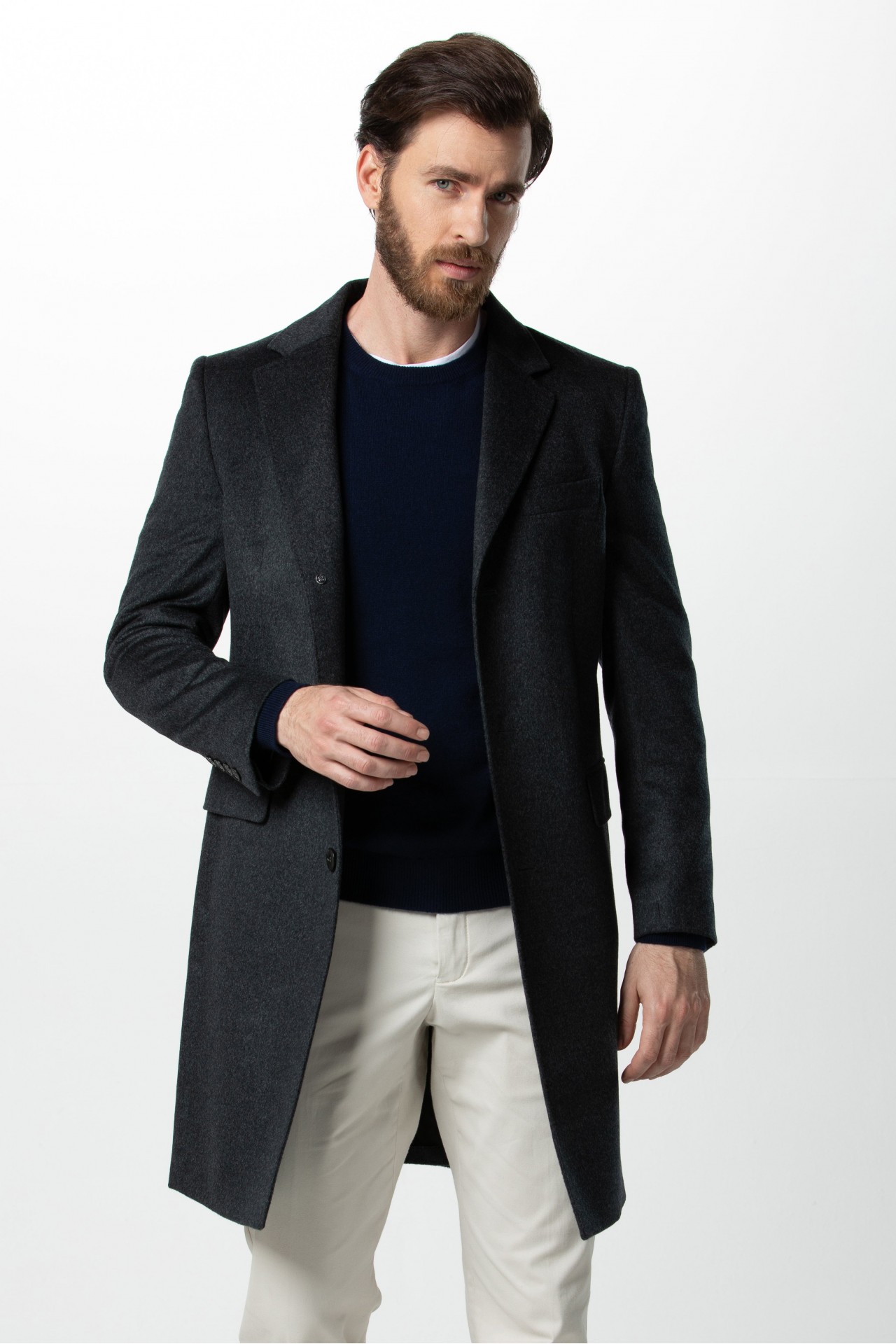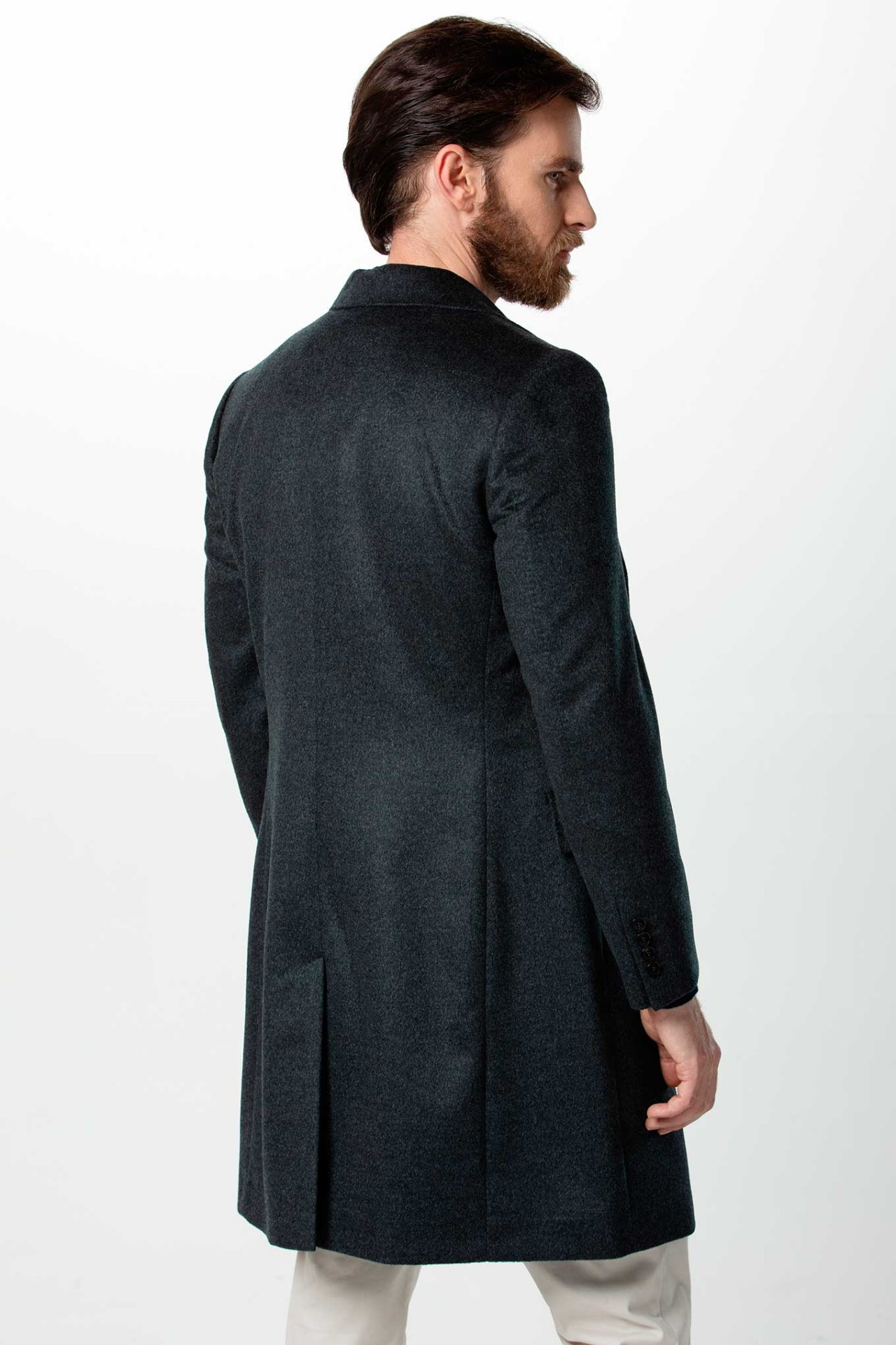 %100 KAŞMİR İÇİ KAPİTONE V YAKA ERKEK KABAN