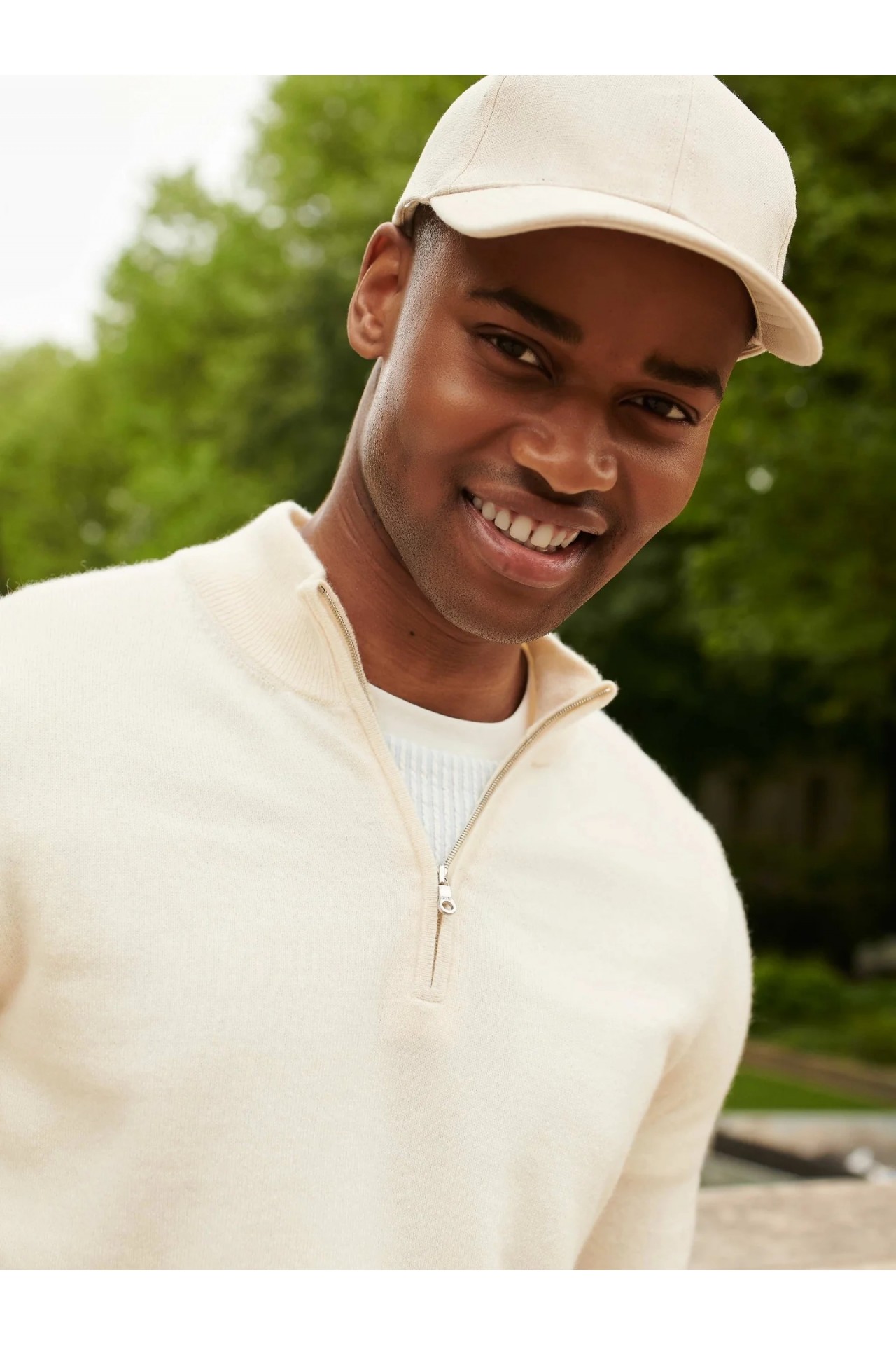 EKRU DİK YAKA FERMUARLI KAŞMİR ERKEK KAZAK