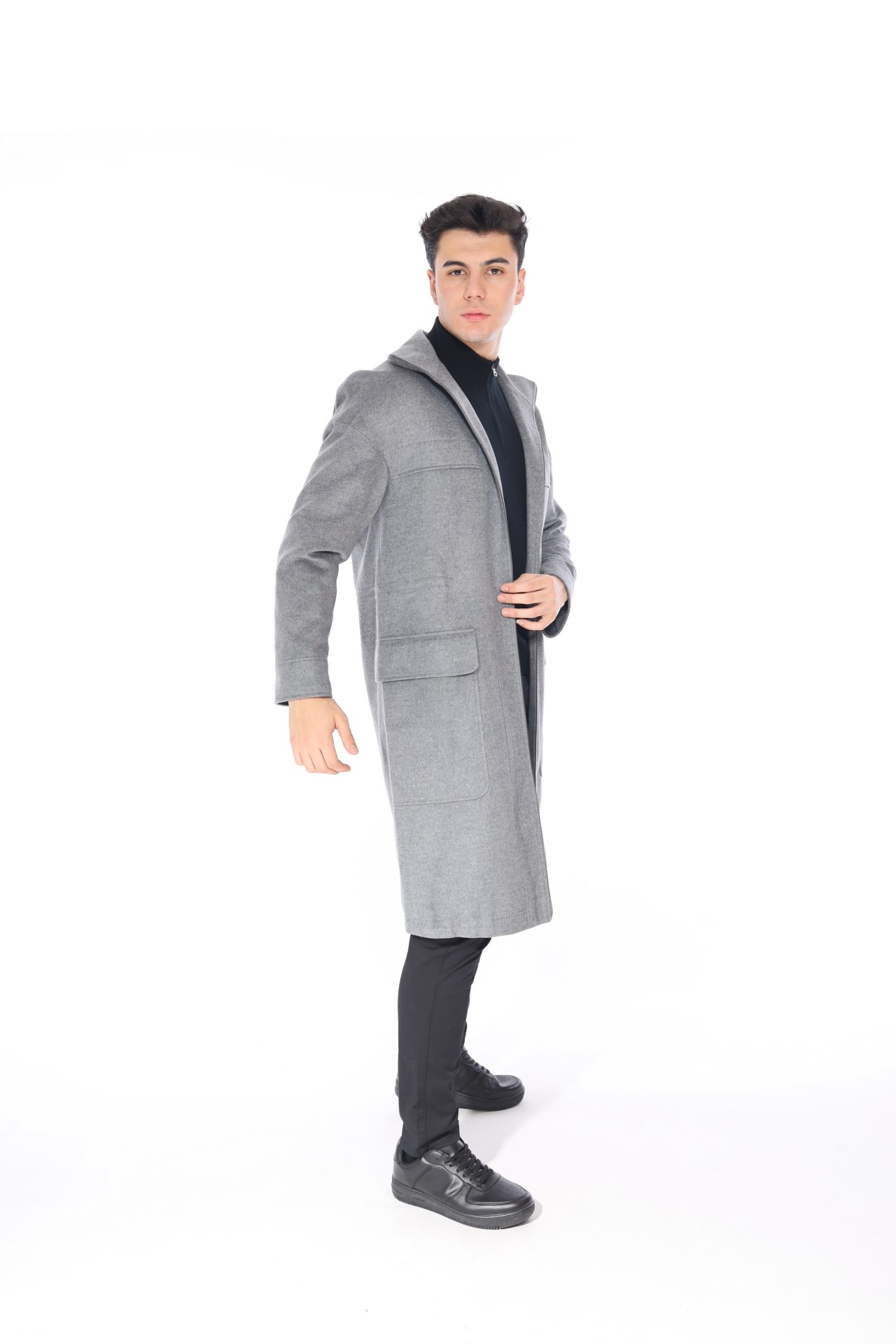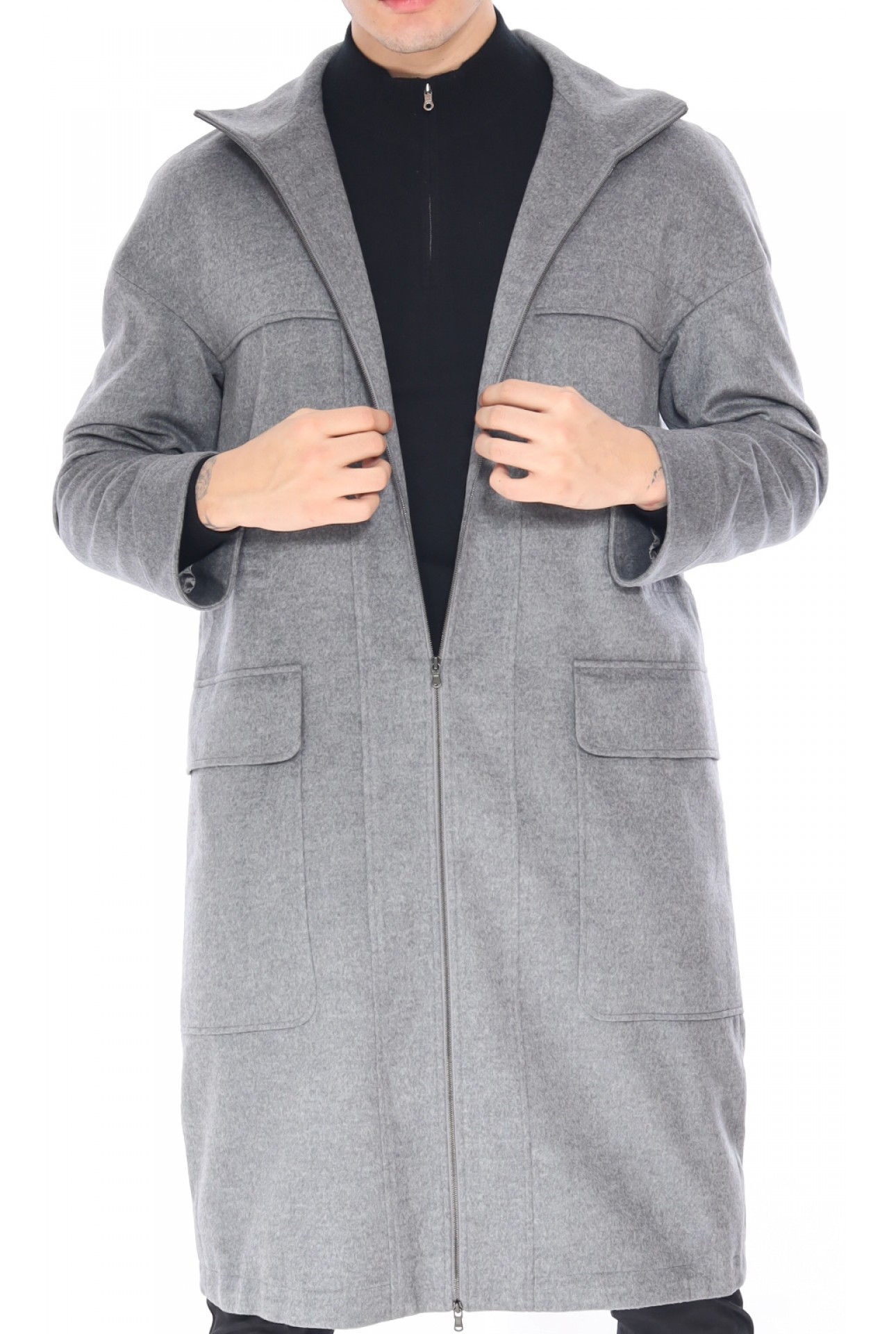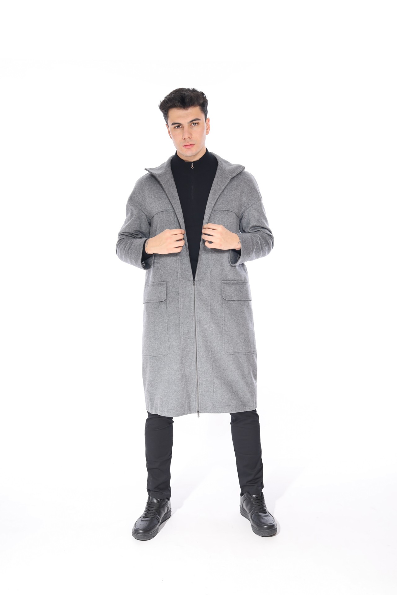 %100 KAŞMİR KAPŞONLU FERMUARLI ERKEK KABAN