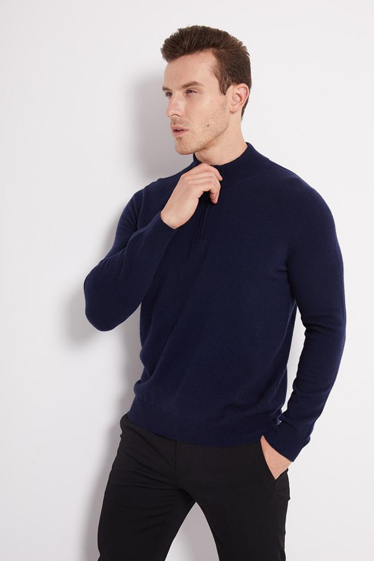 %100 KAŞMİR YAKA FERMUARLI ERKEK KAZAK