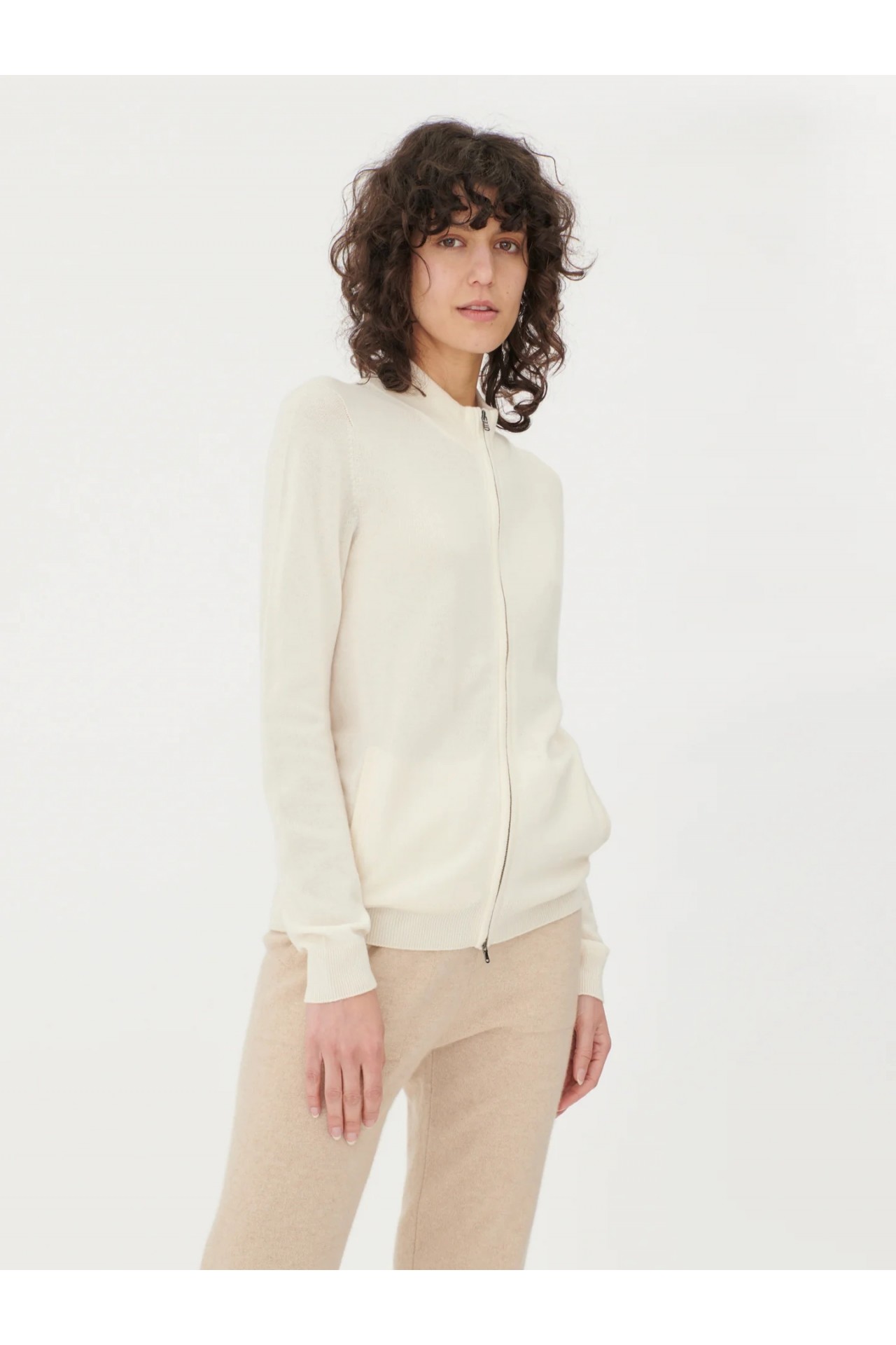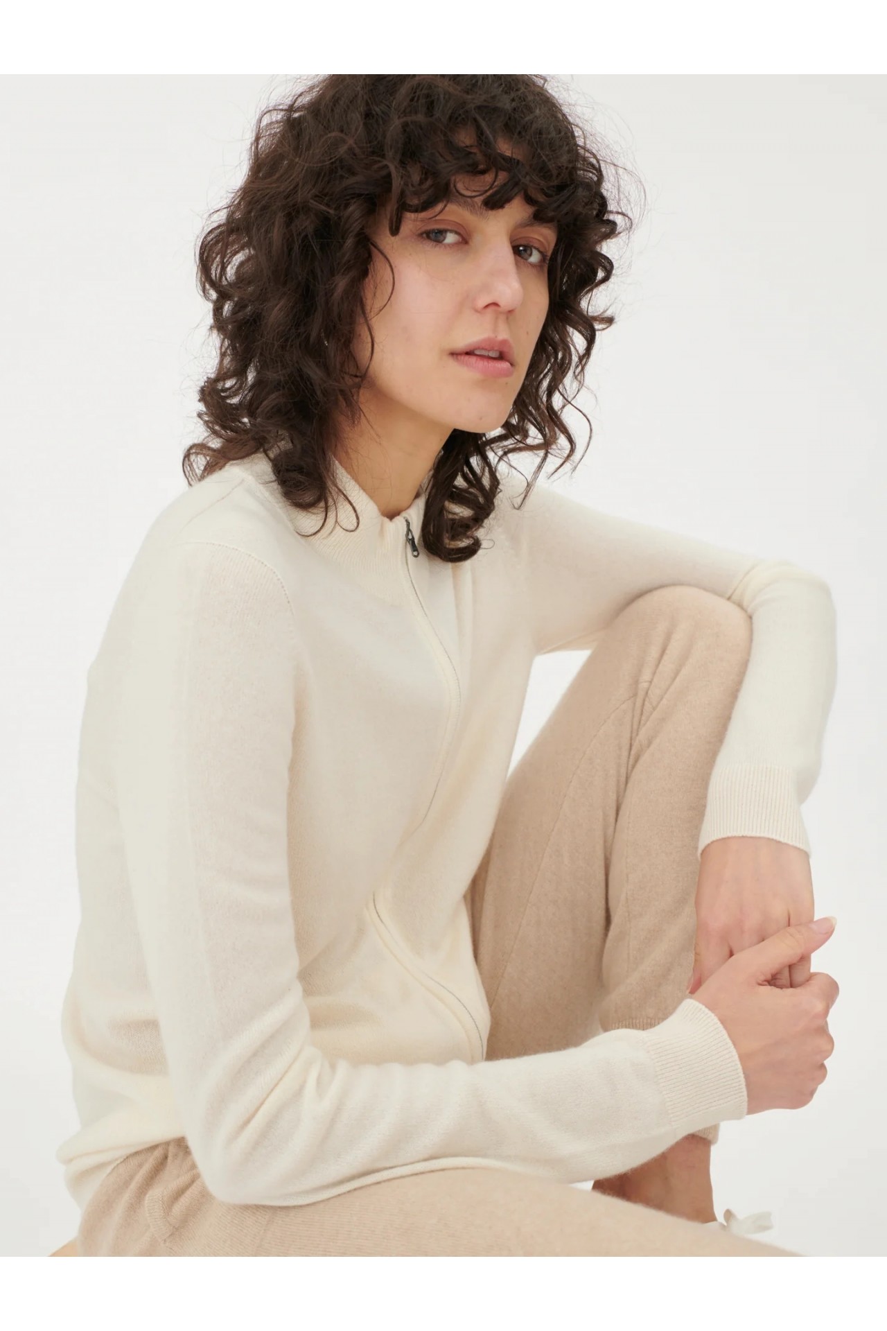 EKRU DİK YAKA FERMUARLI KADIN KAŞMİR HIRKA