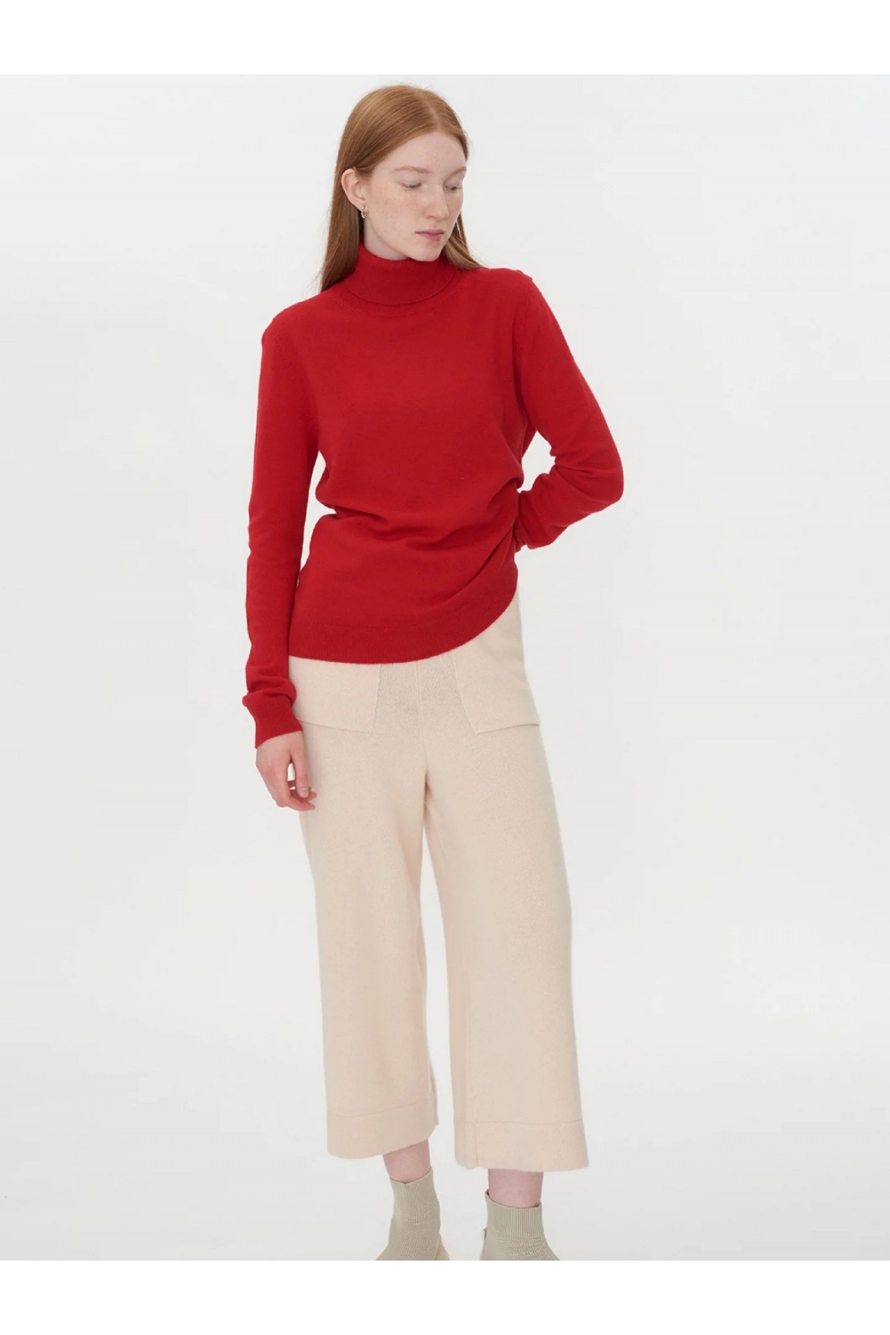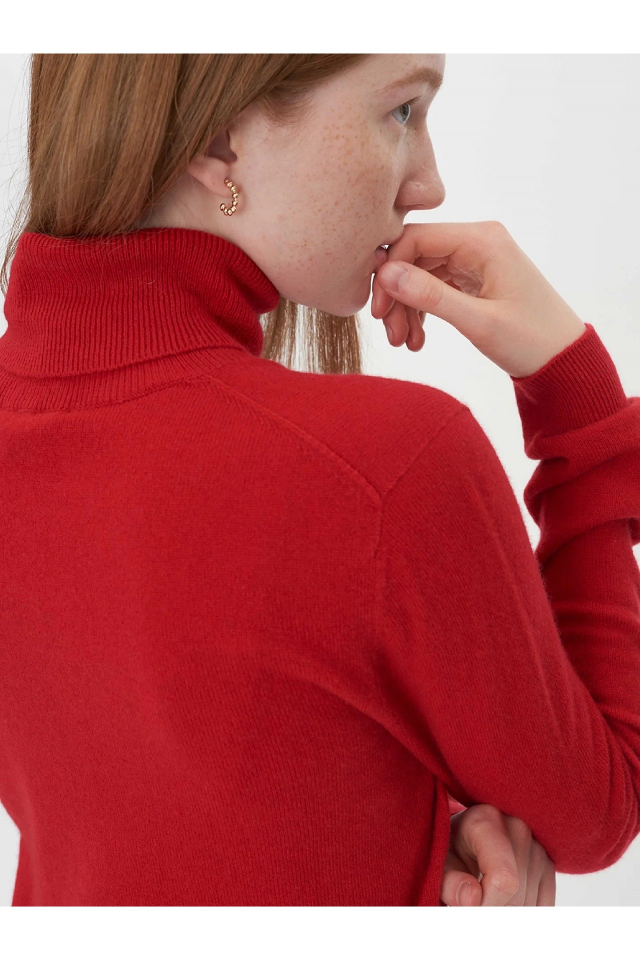 KIRMIZI BALIKÇI YAKA KADIN KAŞMİR KAZAK